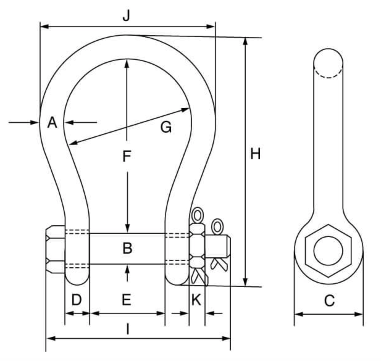 Green Pin BigMouth Grade 8 Bow Shackle with Safety Nut and Bolt Pin