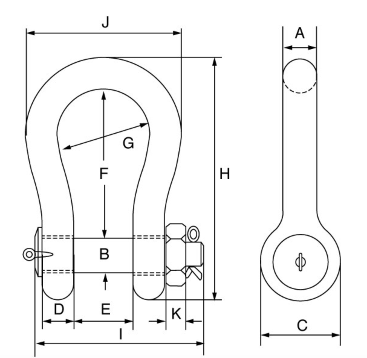 Green Pin Grade 8 Heavy Duty Bow Shackle with Safety Nut & Bolt Pin