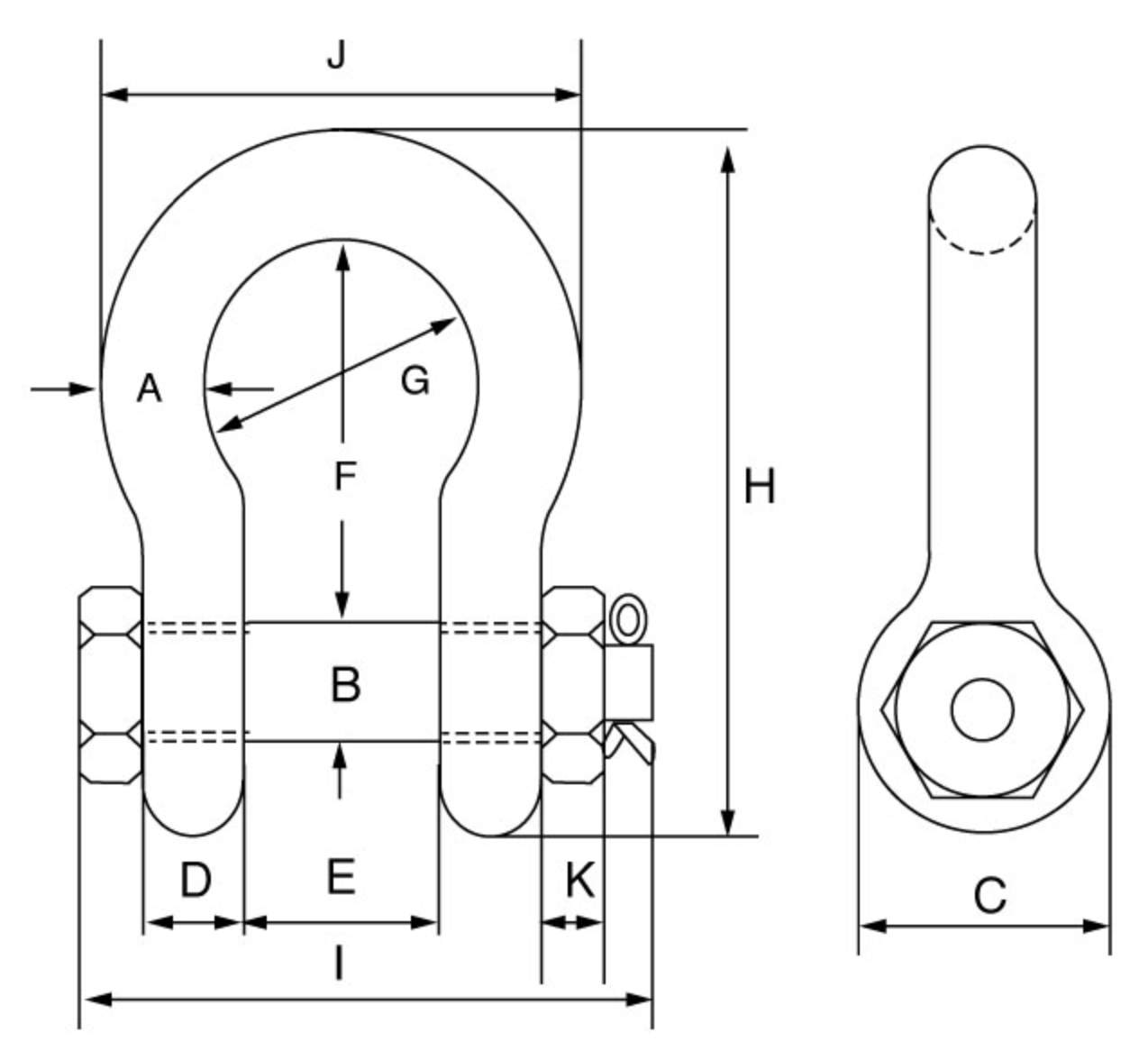 Green Pin Super Grade 8 Bow Shackle with Safety Nut and Bolt Pin