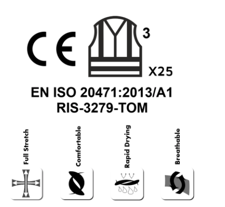 Orange: EN ISO 20471:2013+A1:2016 Class 3 / RIS-3279-TOM (Replaces GO/RT Standard)