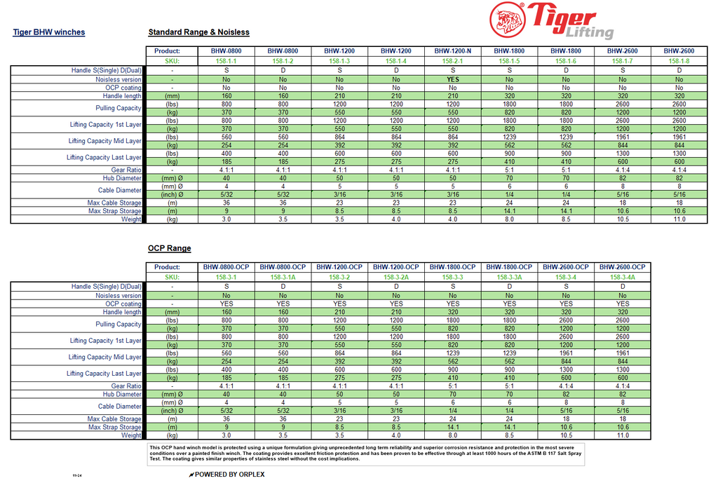 TIGER BRAKE WINCH 550kg (NOISELESS)