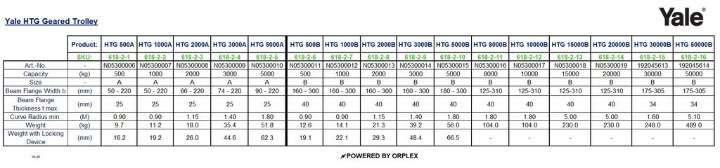 Yale HTG 5000-B Geared Trolley - 5000kg Capacity, Beam Flange Width 180-300mm